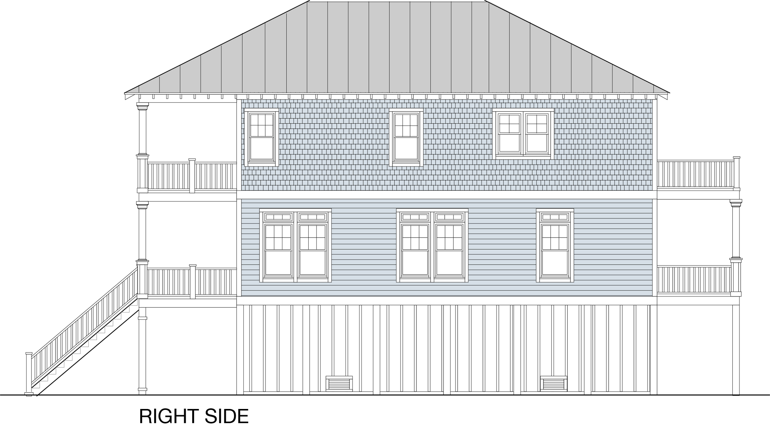 The Laurel 2800-5E cottage plan has five bedrooms, four-and-half bathrooms, and an elevator. This plan has been a top-rated plan for several reasons. It has a very open Great Room that connects to a large porch and the Main Suite to die for. All bedrooms have access to a deck.