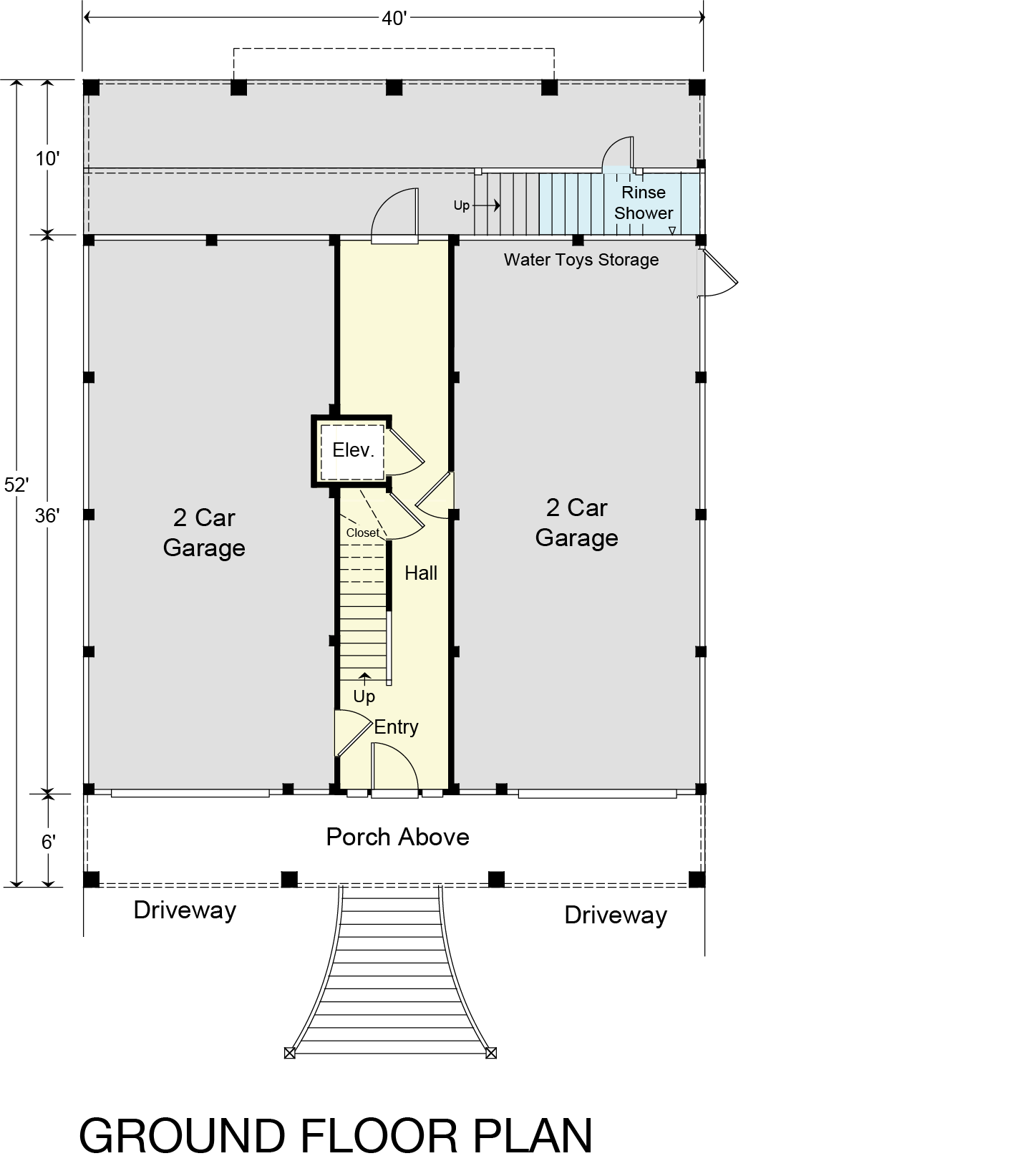 The Ocean Bluff 3163-6E's ground floor is designed with your convenience in mind. It features an easily accessible 4-car garage, an entry foyer, water toy storage, and a rinse shower.