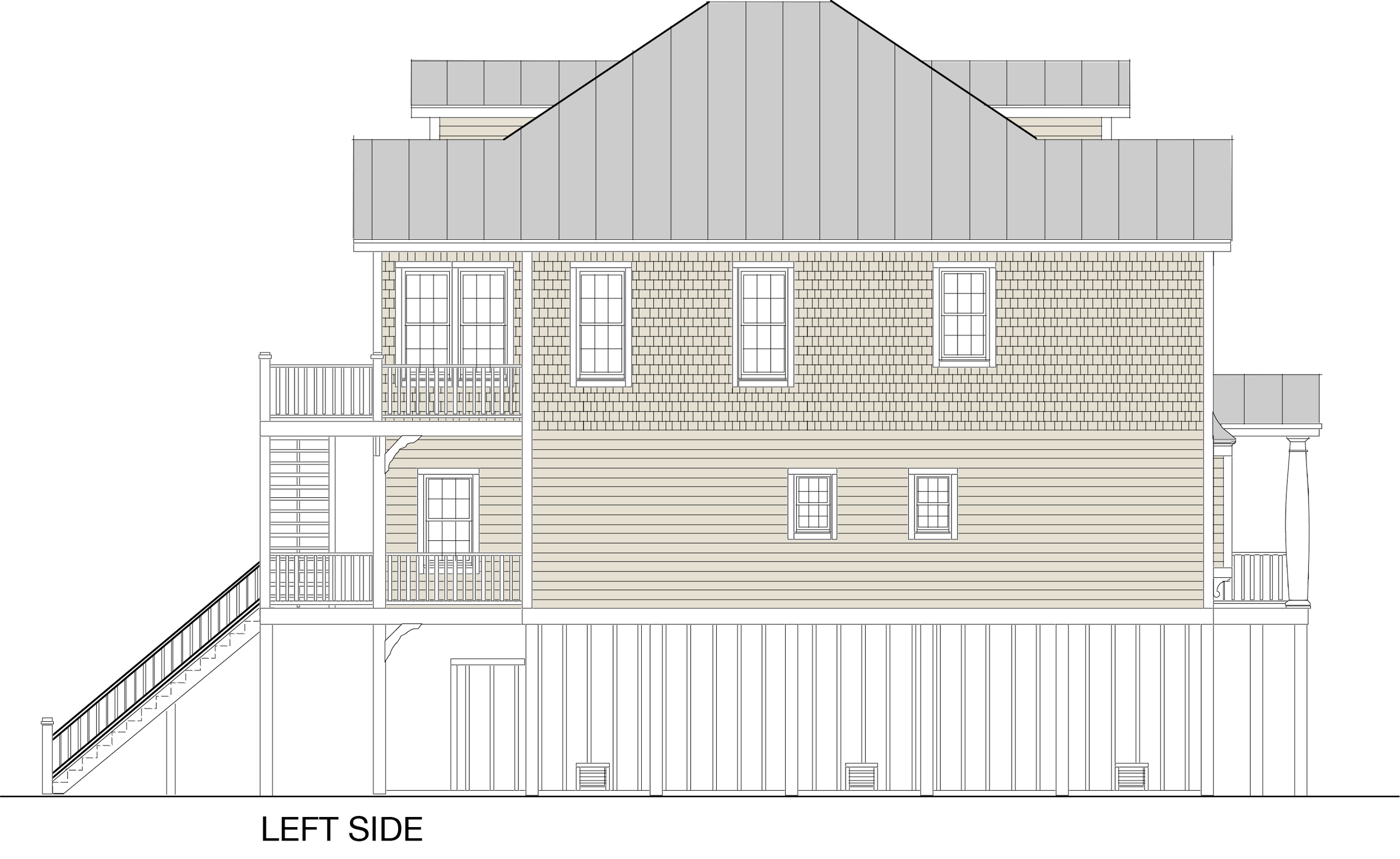 The Ocean Isle 2872-5E beach house plan is a spacious property spanning 2,872 sq. ft., offering luxurious living with five bedrooms, five bathrooms, an office, and a convenient elevator for easy access to all floors.