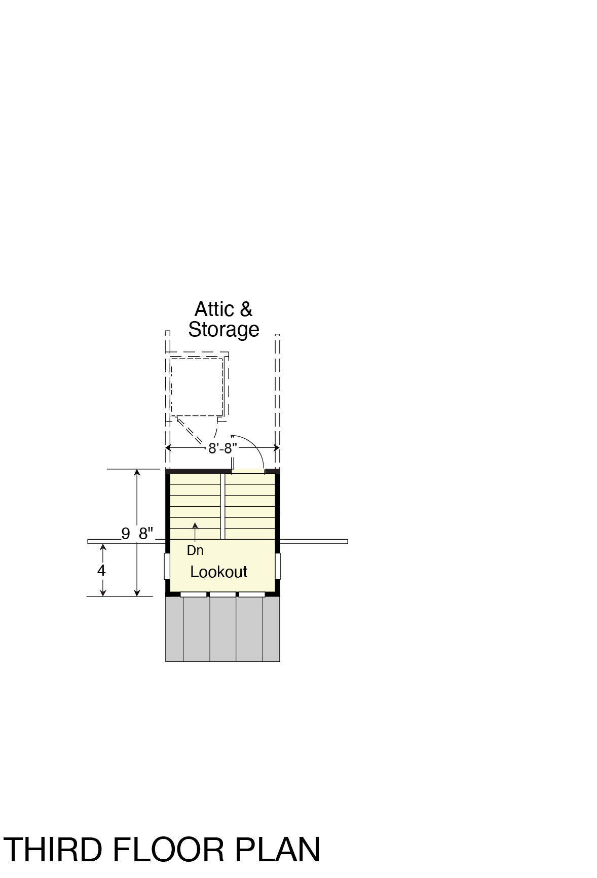 Third Floor: The third floor features a lookout tower, perfect for enjoying panoramic views of the ocean and surroundings, as well as an attic/storage space, providing additional room for storage and flexibility.