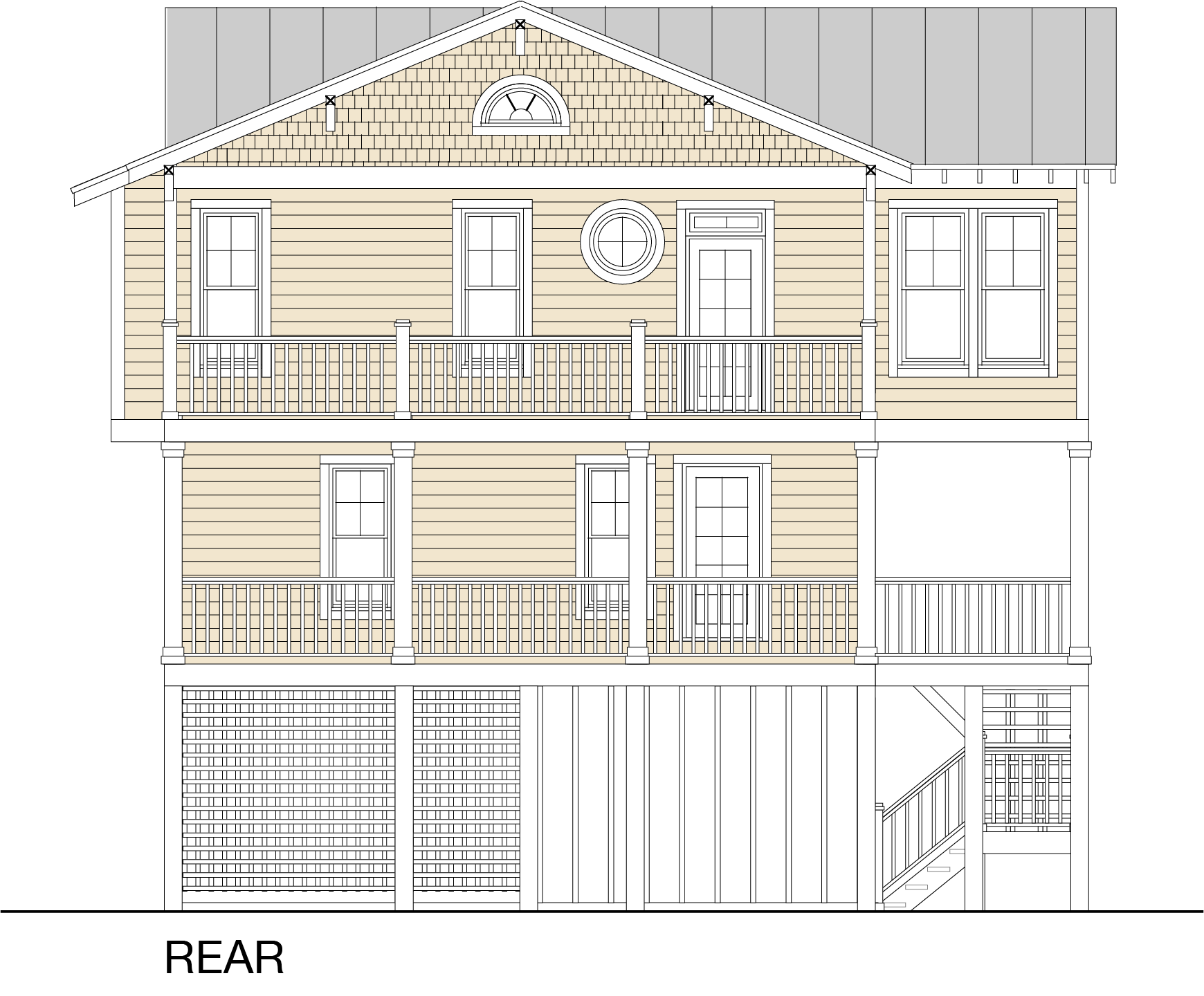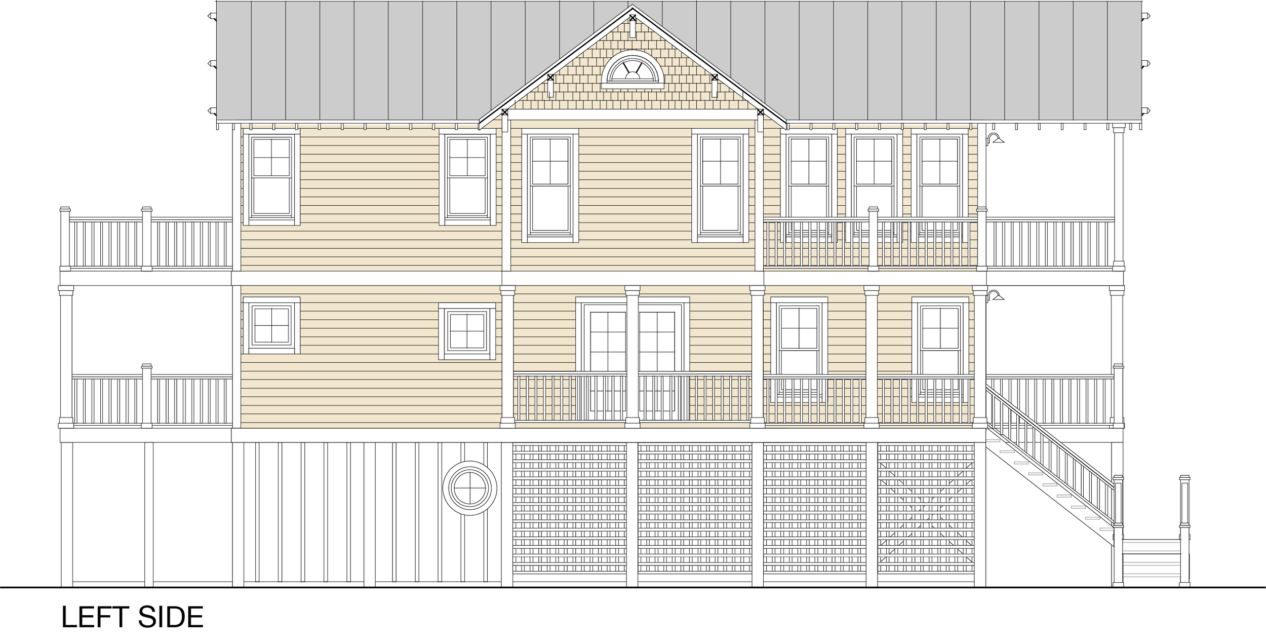 The Sealane II 2467-4E house plan offers a spacious and comfortable living area of 2,467 sq. ft., equipped with four bedrooms, three-and-a-half bathrooms, and an elevator. What's unique about this plan is that the first and second-floor plans are reversed. Although no optional ground floor plans are available for expanding the space, you'll find that this plan has everything you need to feel at home. From the ground floor plan inclusive of carports, entry, and storage to the top floor featuring a Great Room, Kitchen, Dining Area, one and a half bathrooms, the fourth bedroom, along with two covered porches and an open side deck, this house plan has it all. Get inspired and make your dream home a reality with the Sealane II 2467-4E house plan.