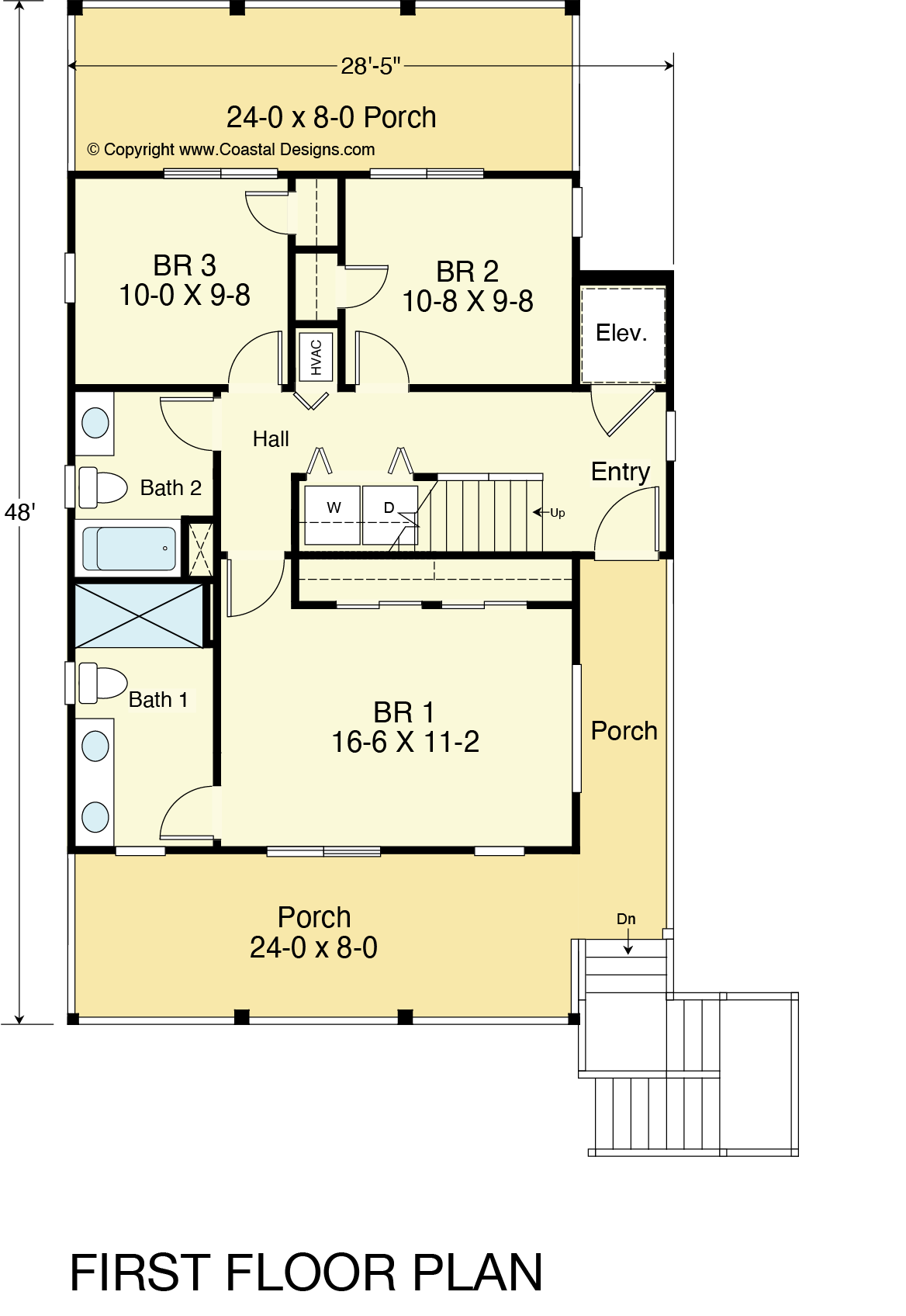 First Floor: The first floor is designed for relaxation and comfort. It features three bedrooms, two bathrooms, a designated area for a washer and dryer, an entry area, and porches in the front and back of the house, providing perfect spots to unwind and enjoy the coastal breeze.